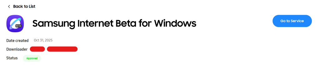 이렇게 Status에 Approved가 뜨면 성공입니다! Go to services에서 설치 파일을 다운로드하면 설치를 시작할 수 있습니다. 역시 ARM 프로세서(스냅드래곤)으로 갤럭시 북을 만드는 삼성답게, ARM 지원 버전도 준비되어 있으니 ARM 프로세서를 사용 중이라면 ARM 지원 버전을 다운로드하시면 됩니다.