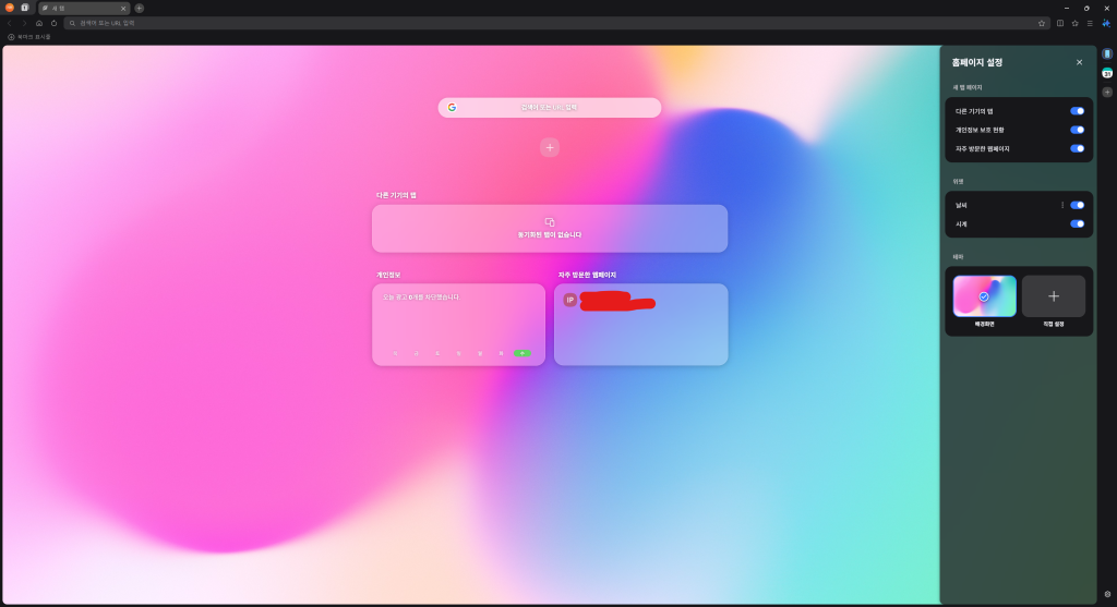 설치가 완료되었다면, 이렇게 새 탭 화면을 볼 수 있습니다.