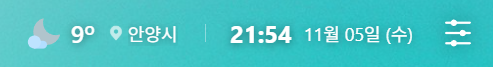 구석에는 날씨와 시계를 켜고 끌 수 있는 구역이 있습니다. 이 구역을 제외하면, 모바일 삼성 인터넷과 꽤 유사하게 생겼습니다. PC버전 웨일 브라우저와도 비슷하게 생긴 것 같습니다.